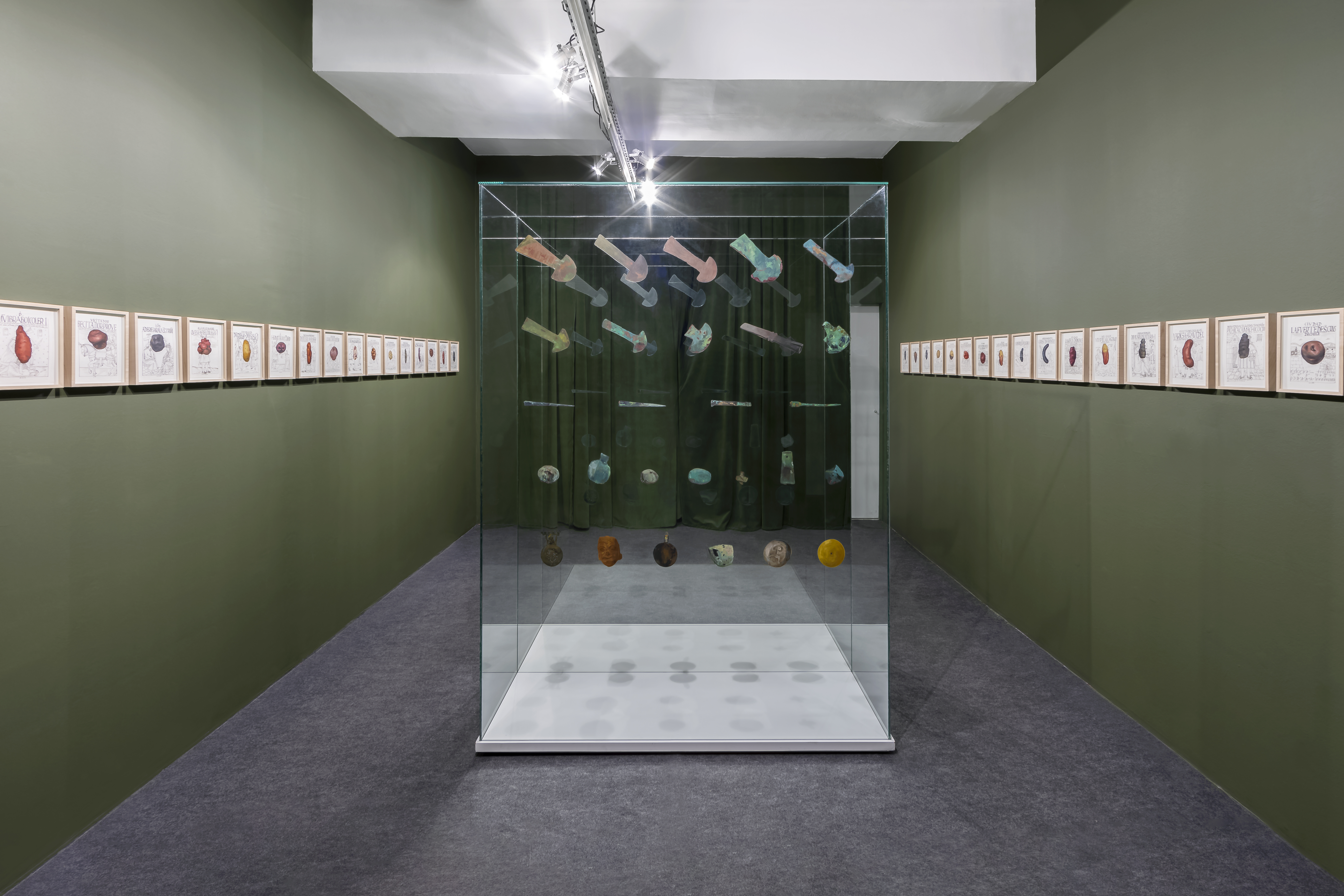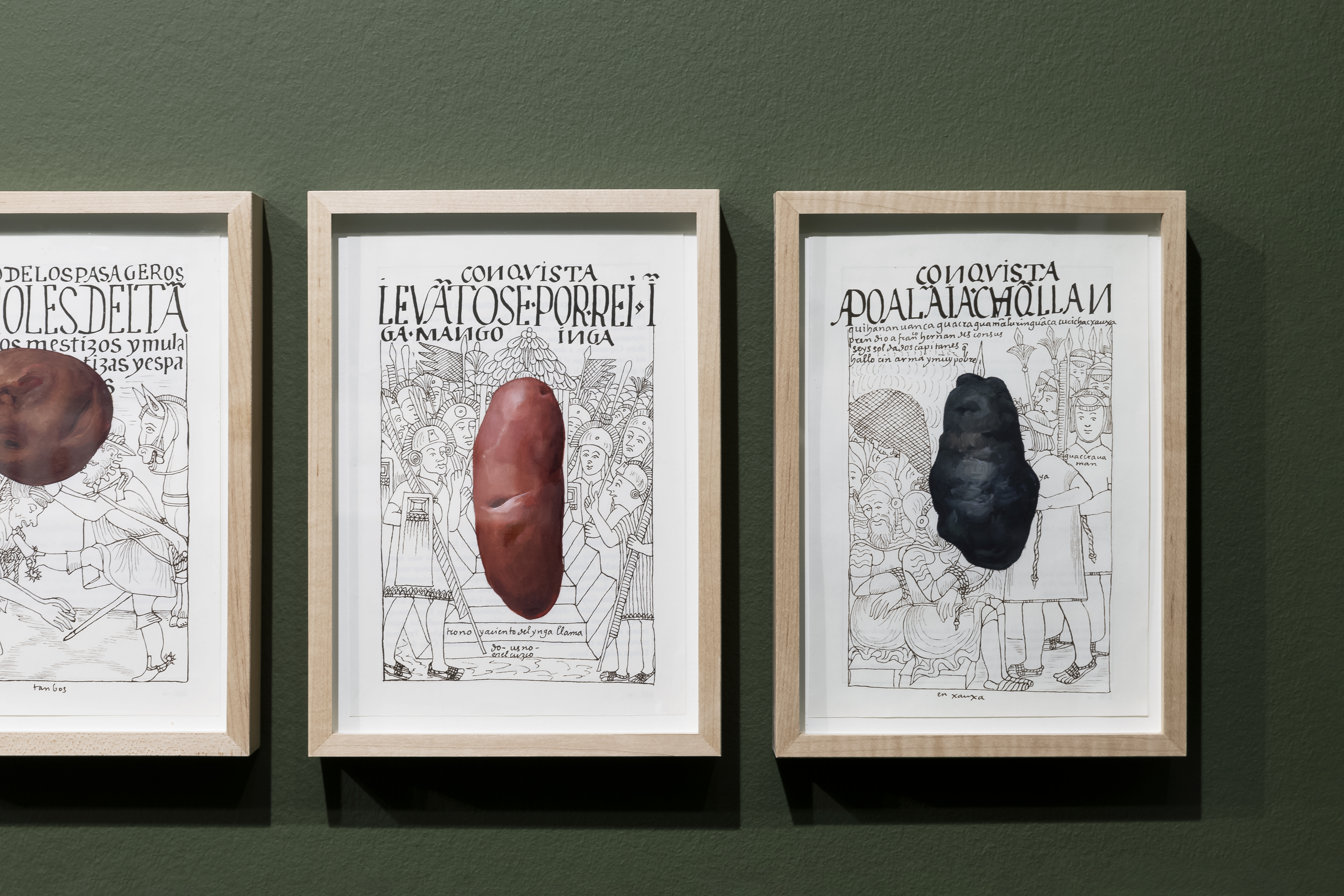 O trabalho do Frame Colectivo incidiu na conceção da cenografia, articulando as três propostas artísticas num desenho espacial-expositivo que criou momentos distintos para potenciar a expressão própria das obras dentro de um mesmo espaço. Procurou-se sustentar o confronto com as narrativas coloniais que estruturam coleções arqueológicas e etnográficas europeias, e criar condições para uma leitura crítica das obras.