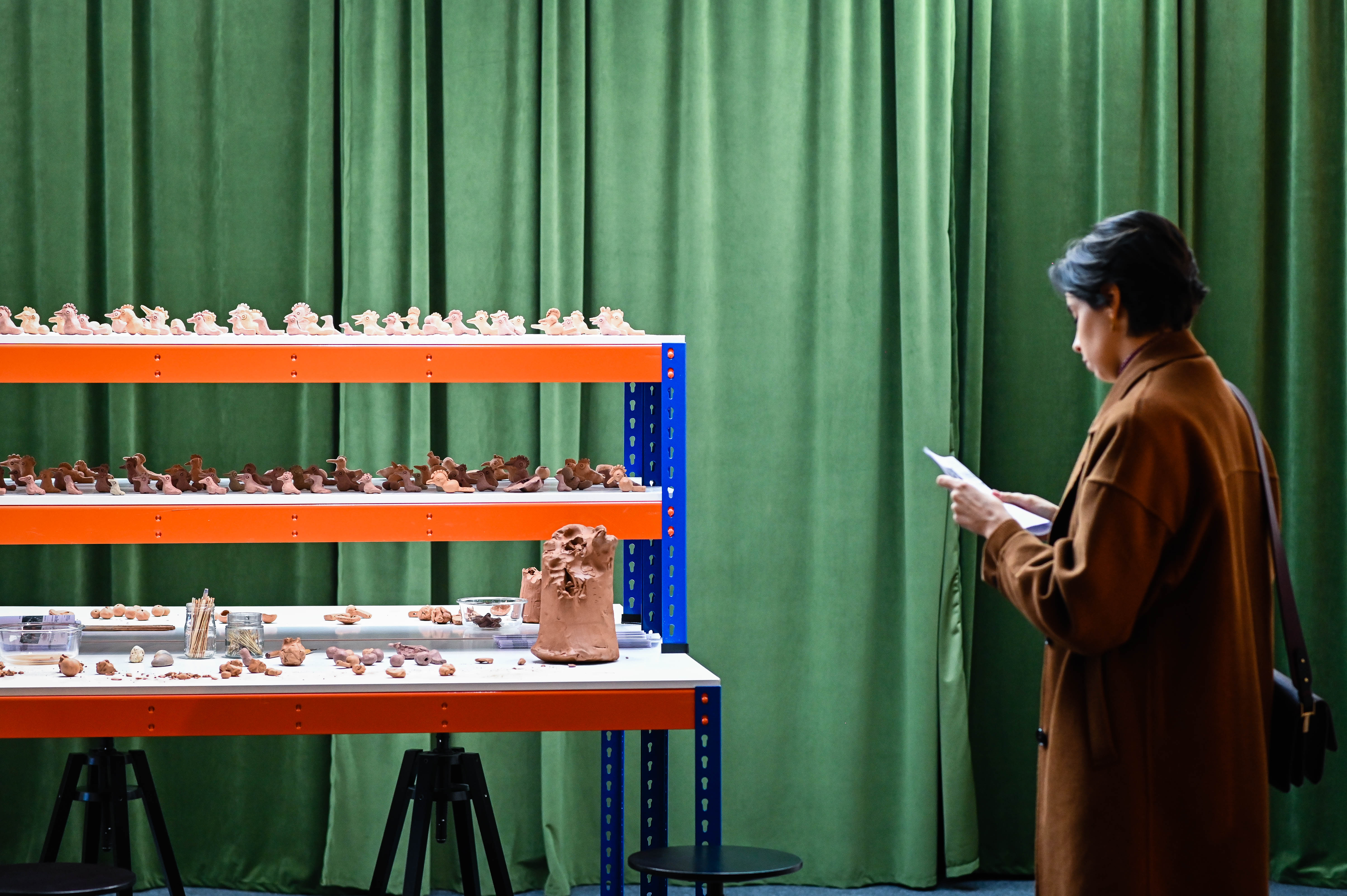 Pamela Cevallos (1984, Quito), artista visual e antropóloga. Em Cómo liberar un pájaro, propõe uma restituição simbólica de instrumentos cerâmicos pré-hispânicos, restaurando o seu murmúrio e voz através de práticas colaborativas.